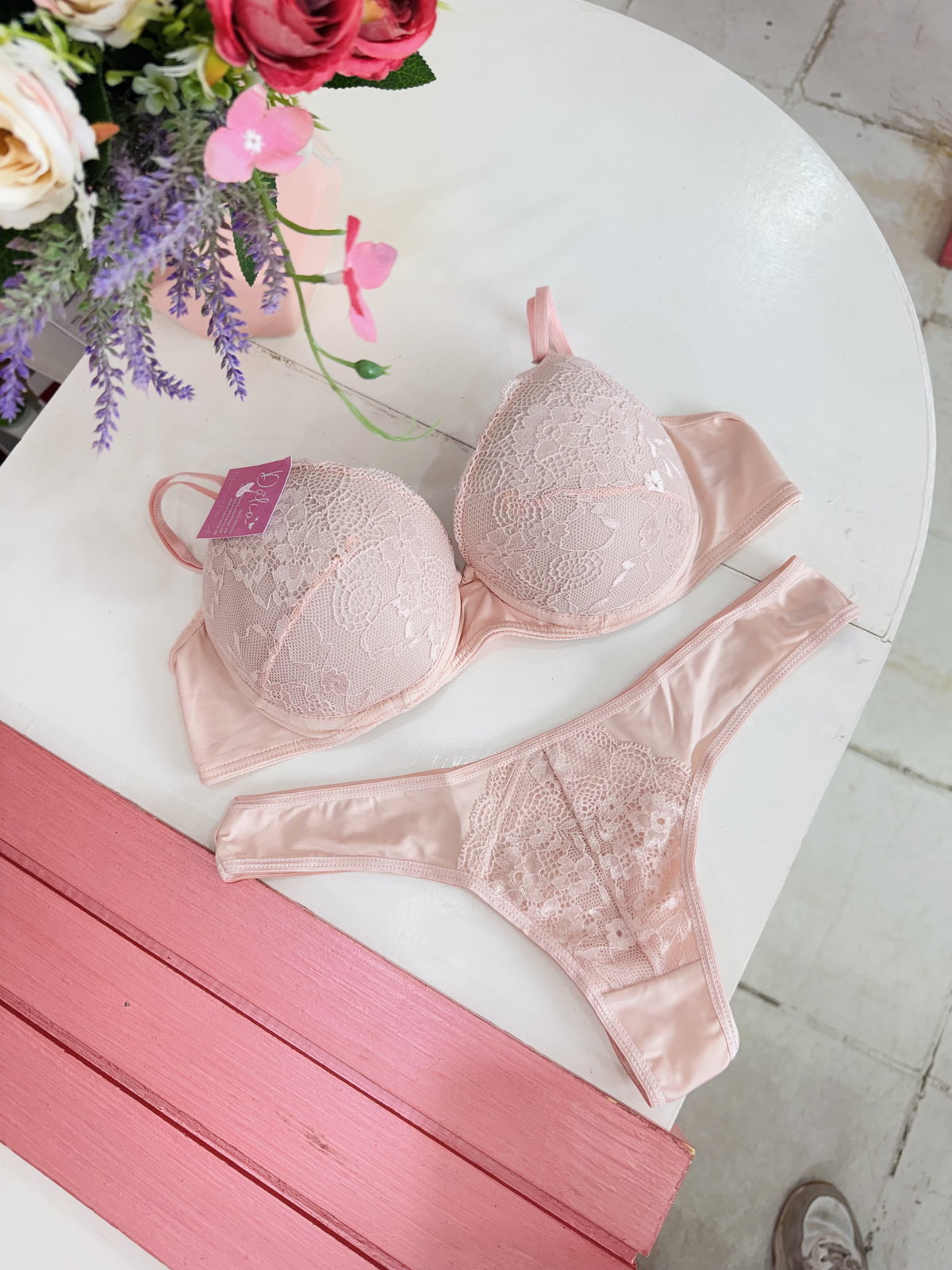 Conjunto de encaje y Lycra, armado (arco y taza) 🎀
