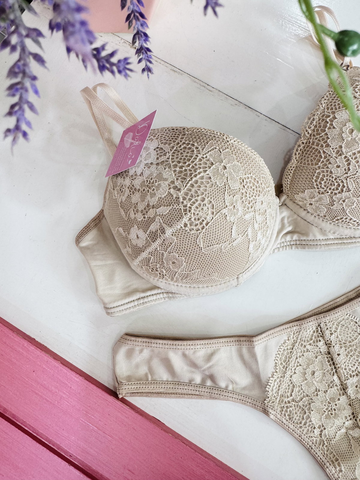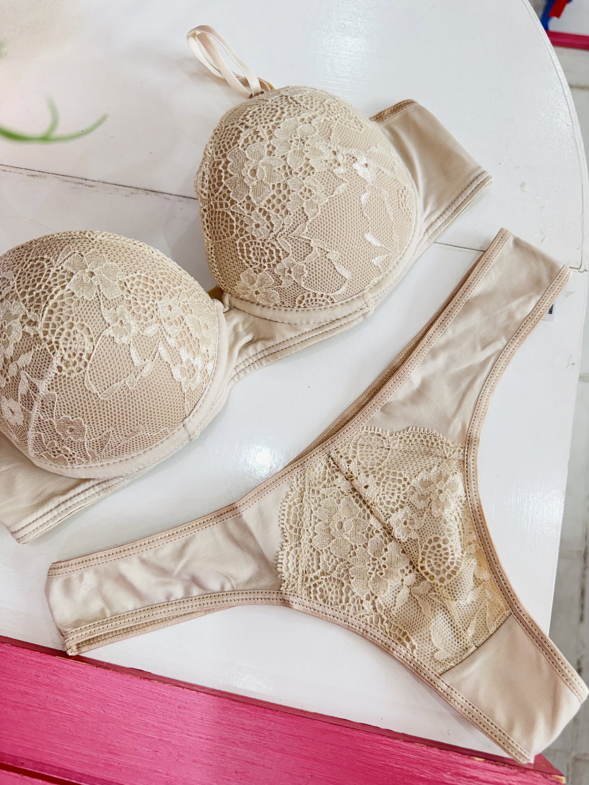 Conjunto de encaje y Lycra, armado (arco y taza) 🎀