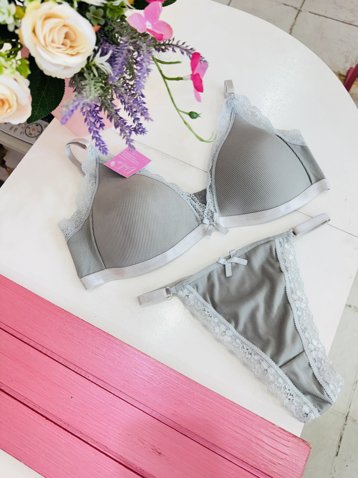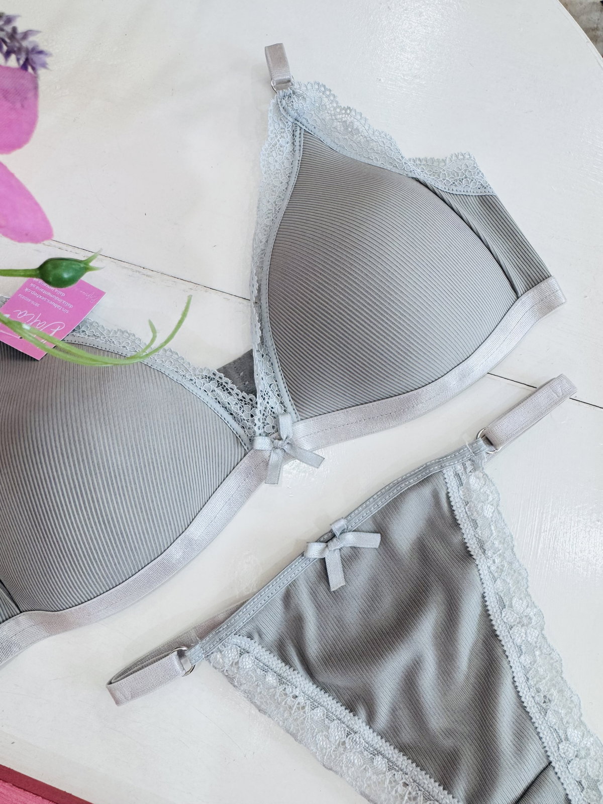 Conjunto taza Soft, de morley con detalles en puntilla, y less regulables 🎀