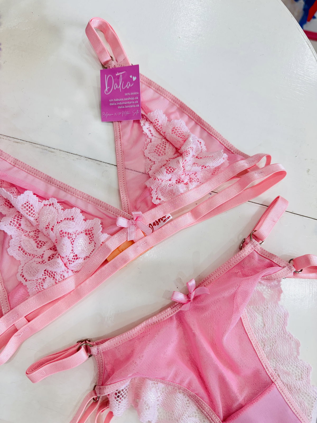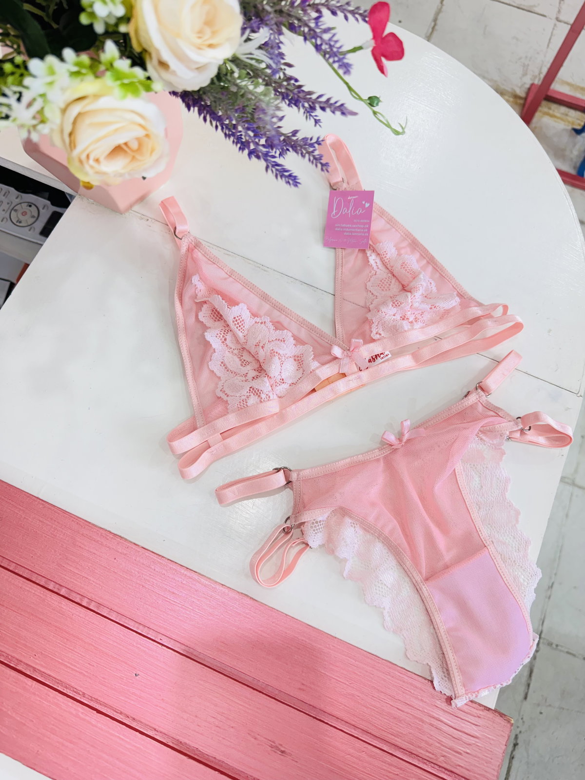 Conjunto Bralette de encaje y microtul, súper delicado y lindo 🎀 viene con less doble tira 💖
