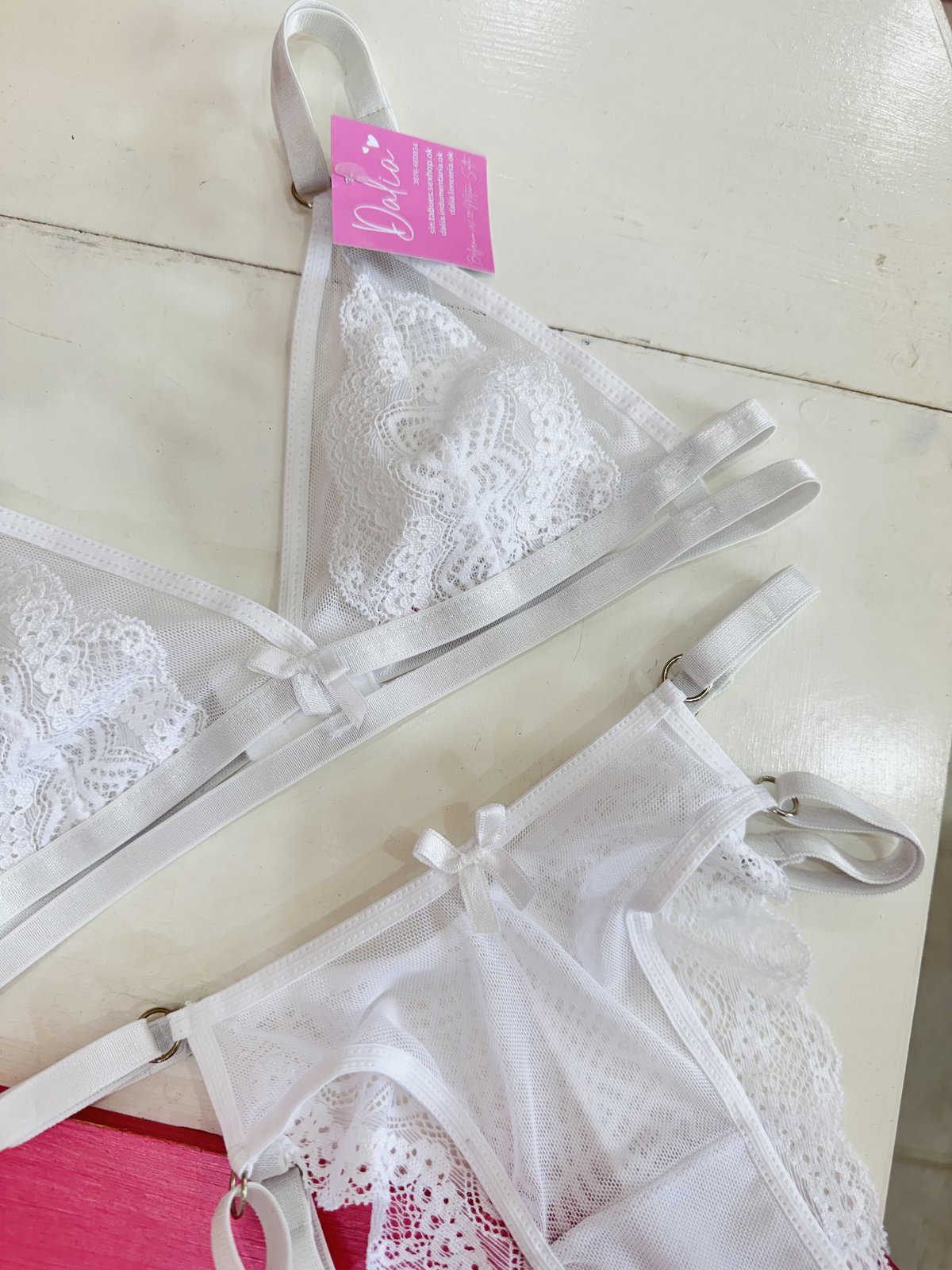 Conjunto Bralette de encaje y microtul, súper delicado y lindo 🎀 viene con less doble tira 💖