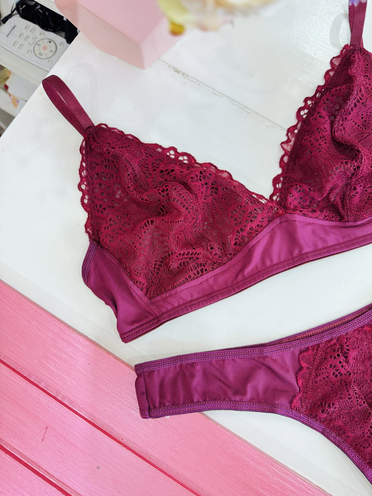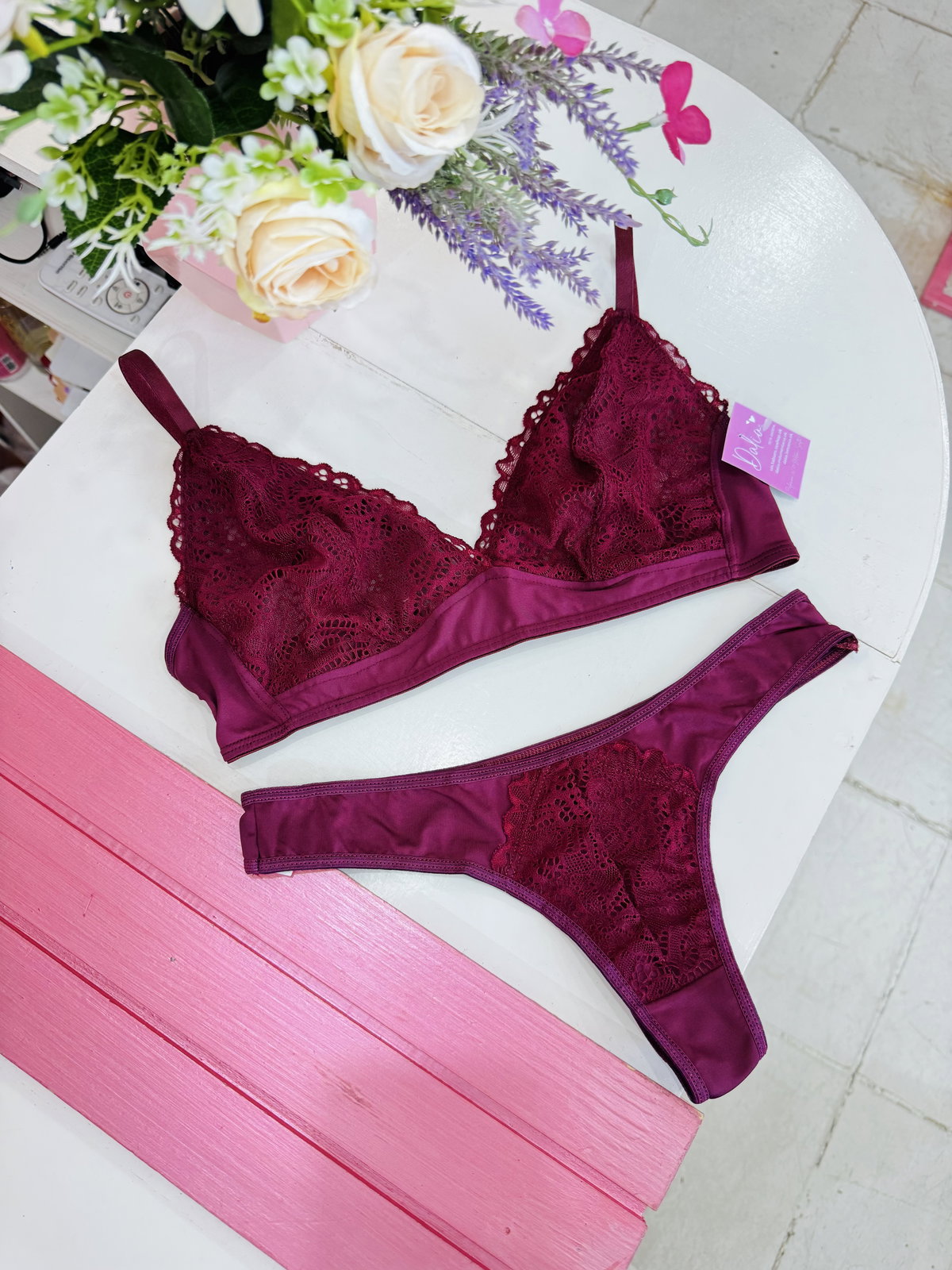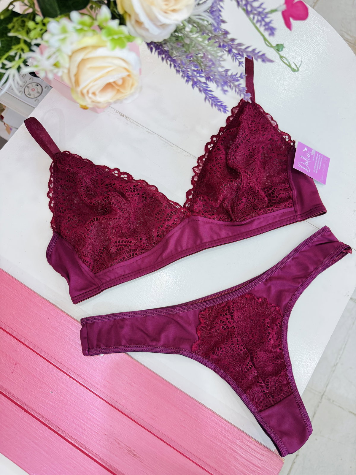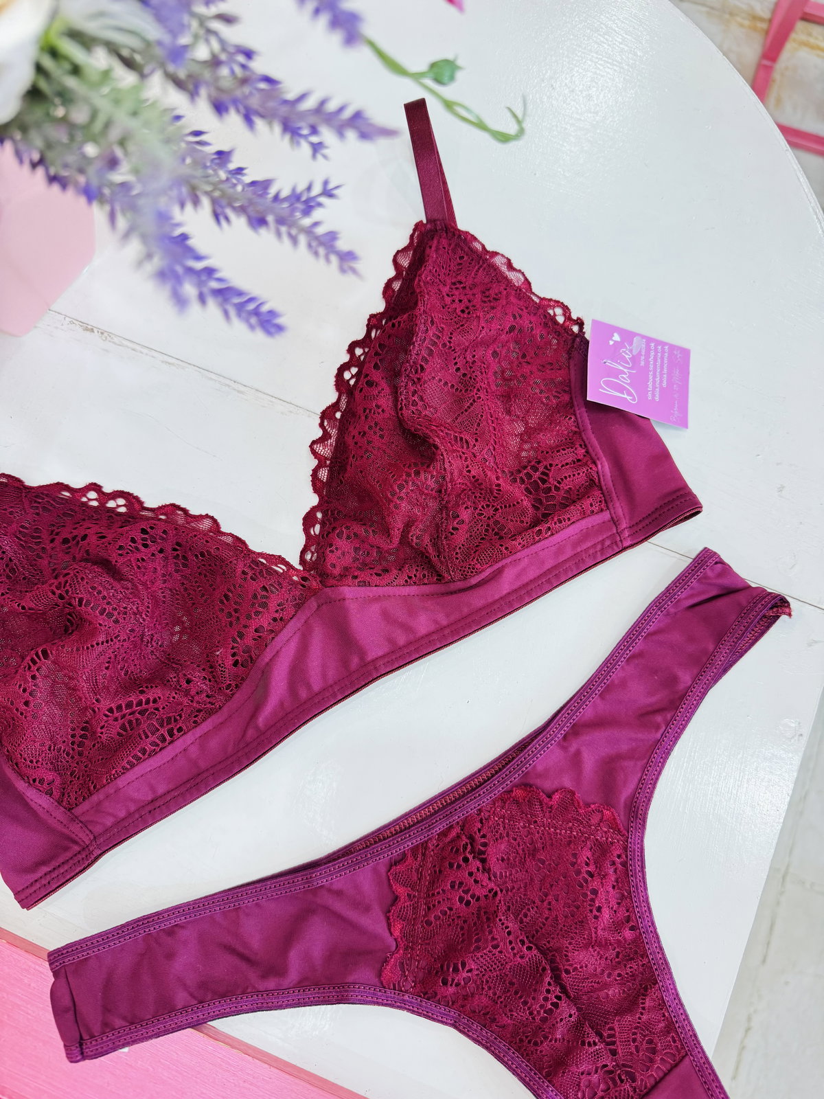 Conjunto Bralette, de encaje y Lycra, taza forrada de microtul. Con Colaless 🎀