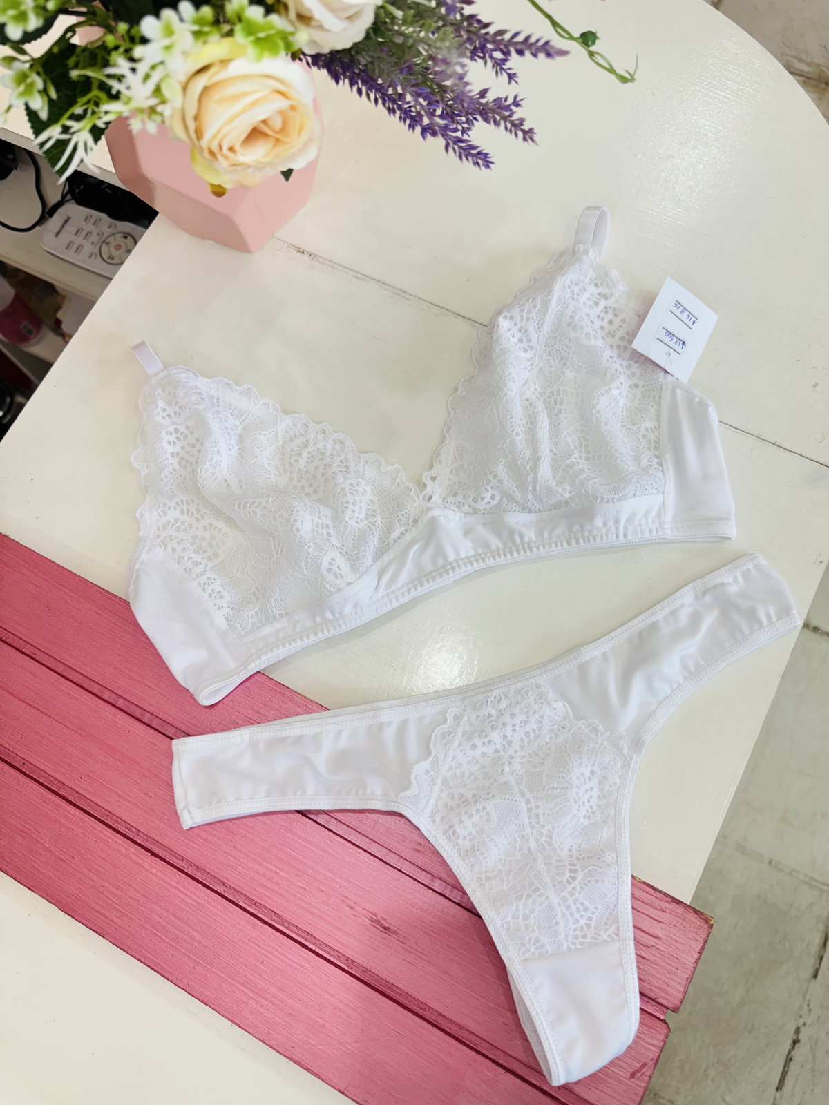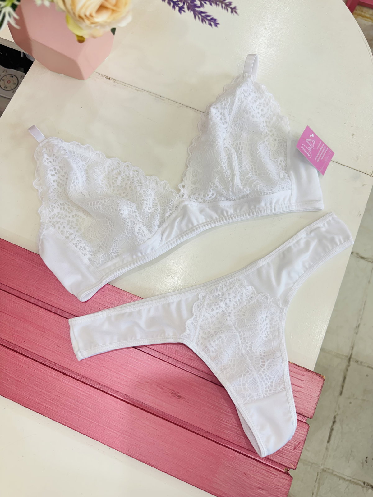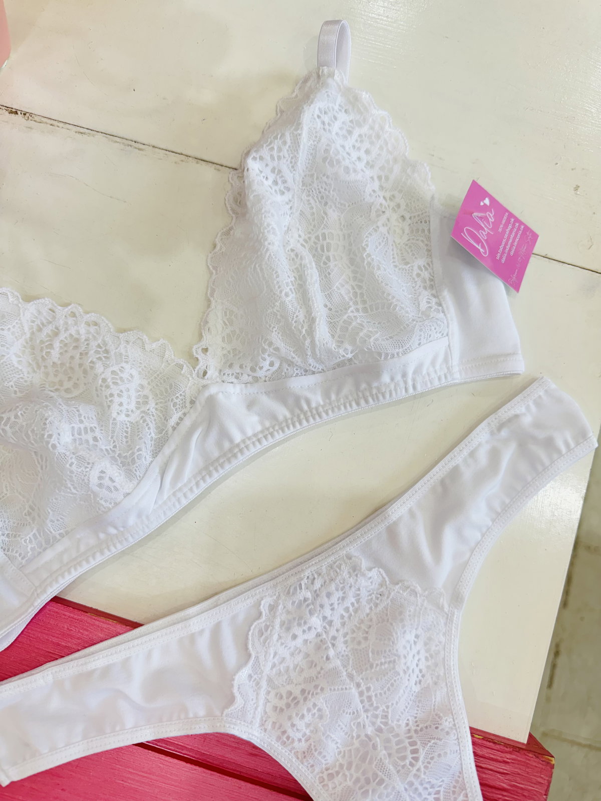 Conjunto Bralette, de encaje y Lycra, taza forrada de microtul. Con Colaless 🎀