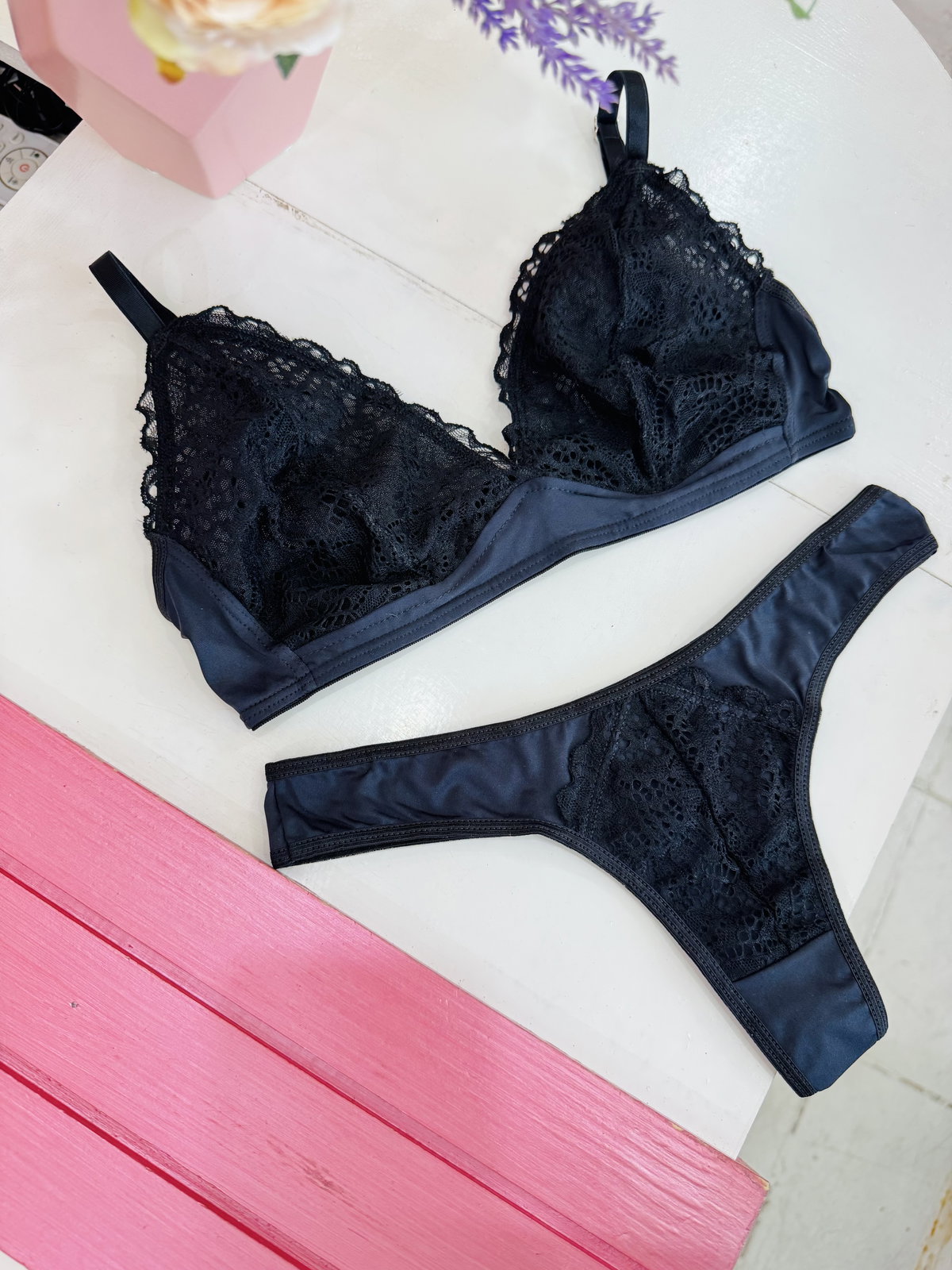 Conjunto Bralette, de encaje y Lycra, taza forrada de microtul. Con Colaless 🎀