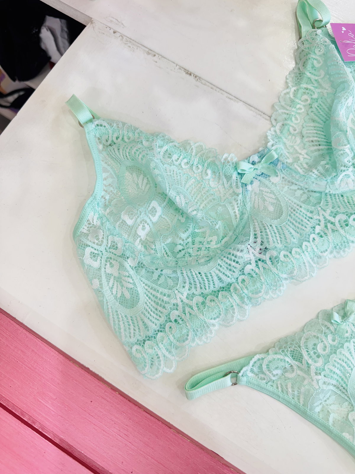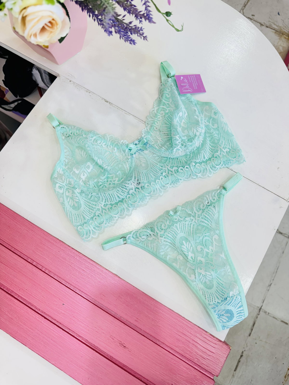 Conjunto con arco, de encaje y less regulable 🎀
