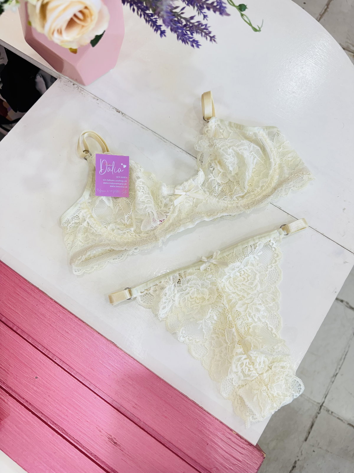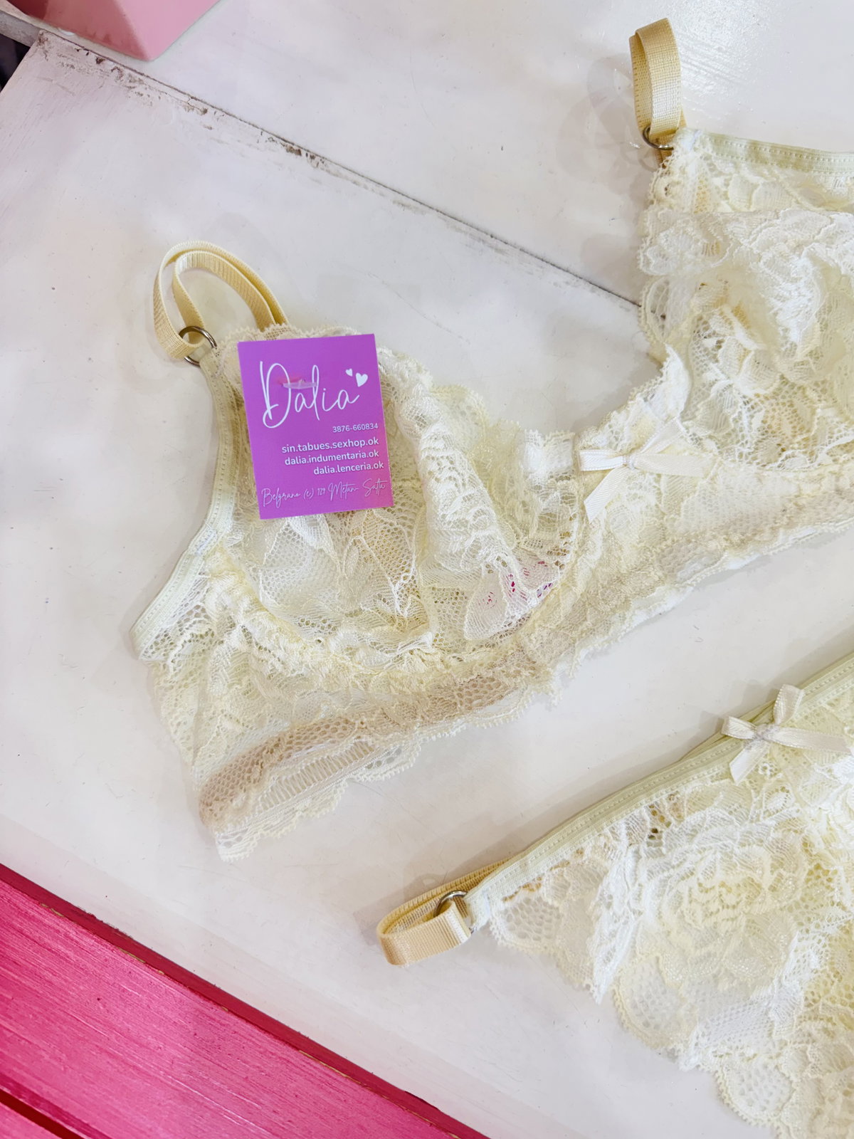 Conjunto con arco, de encaje y less regulable 🎀